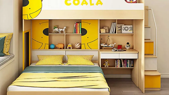 5 aylık sarı renkli erkek ranza ile merdiven dolap çocuk ahşap ranza